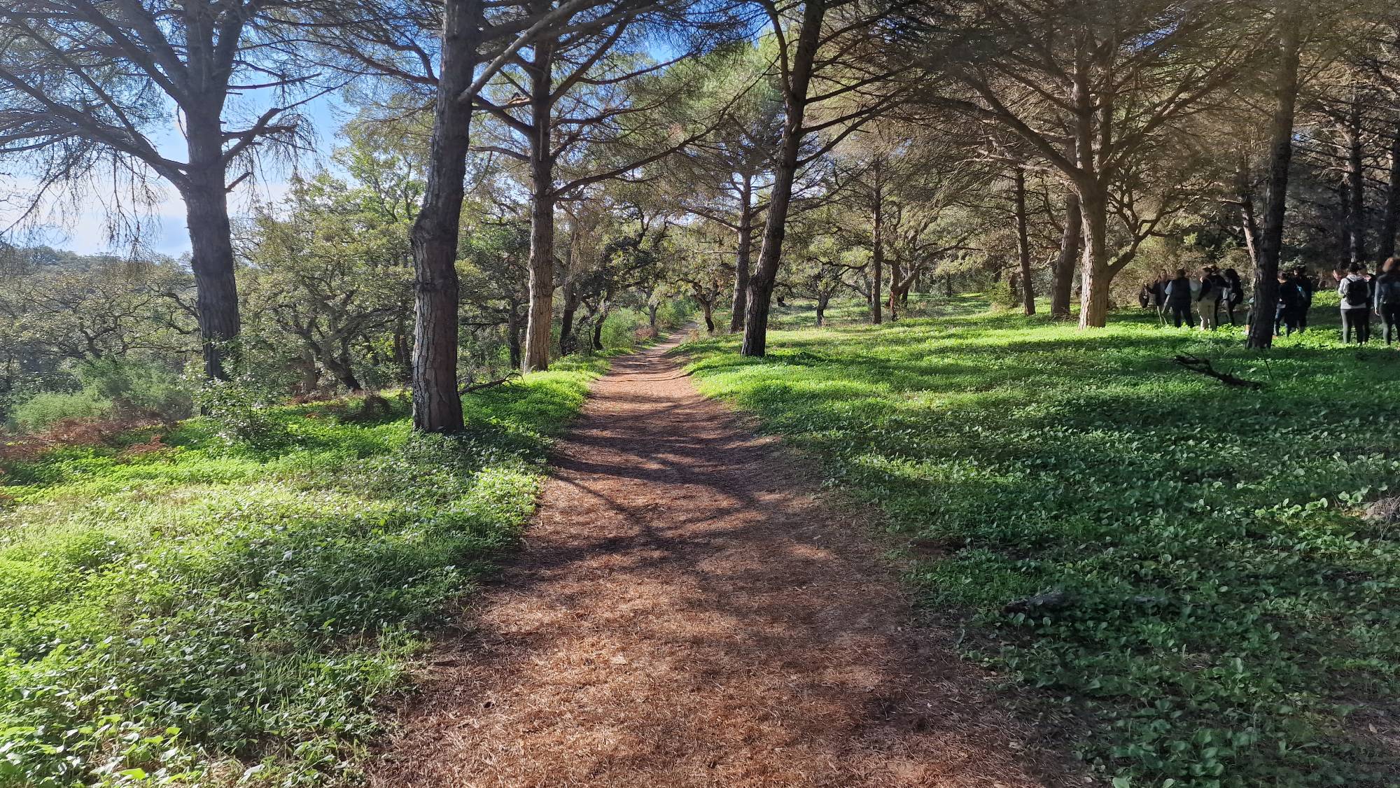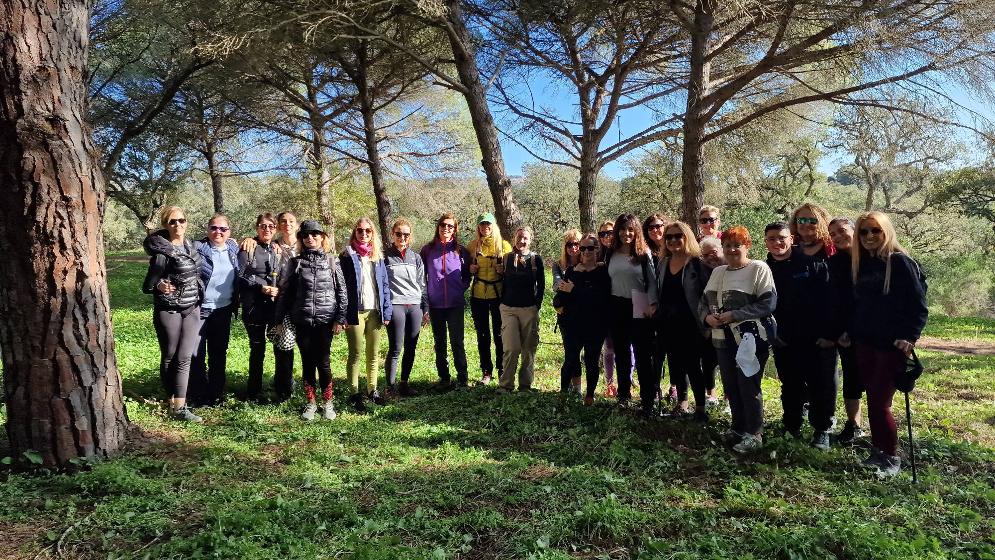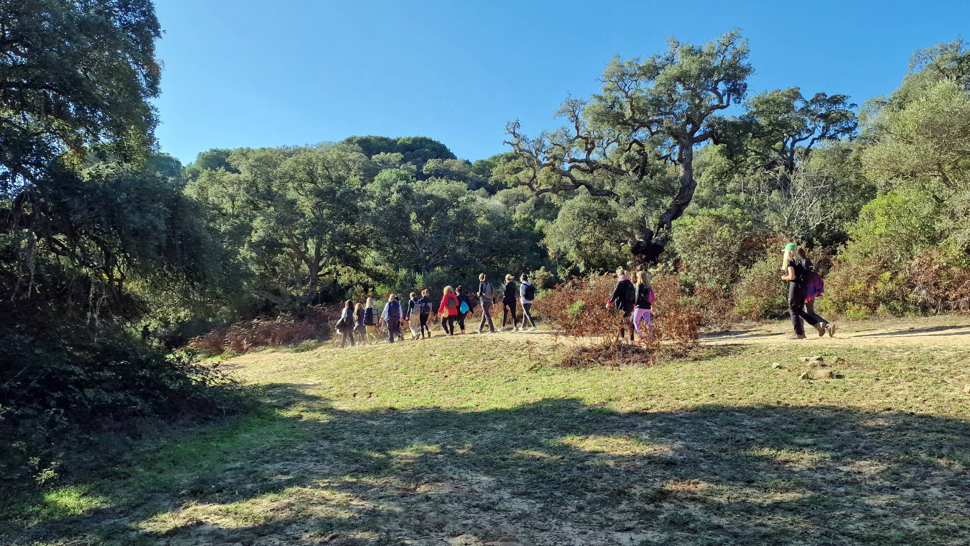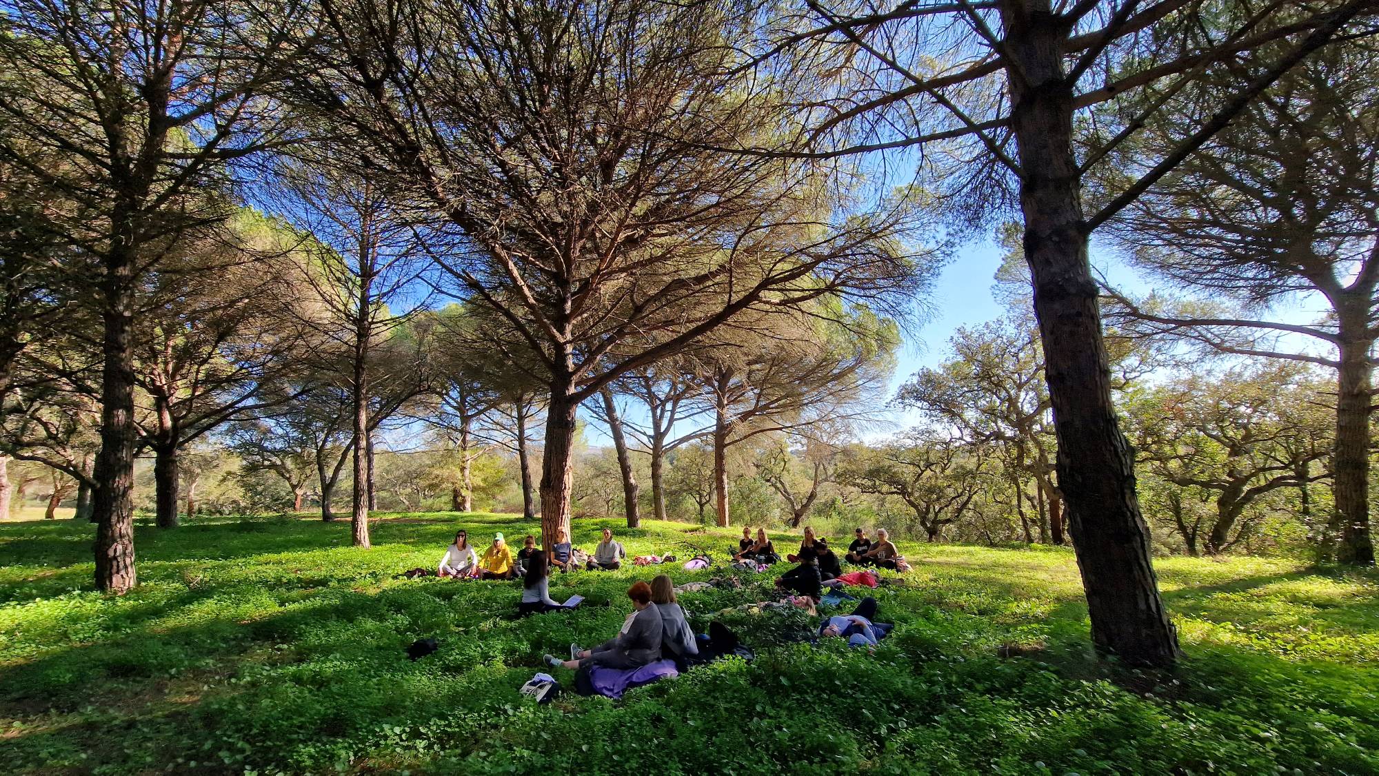 El popular entorno natural de El Pinar del Rey en San Roque fue el paraje elegido para caminar en atención plena y poner en práctica nuevas dinámicas de meditación. Al tratarse de un concepto de senderismo diferente, nos dimos la oportunidad de modificar el trayecto oficial, permitiéndonos realizarlo en sentido contrario y disfrutar de la tranquilidad que ofrece el paraje al otro extremo de la Fuente de la Alhaja.