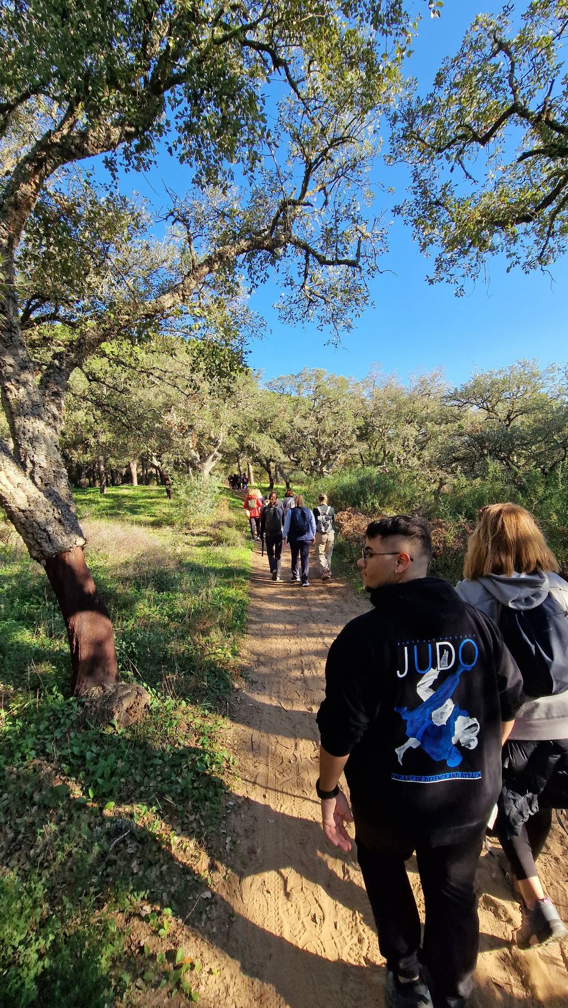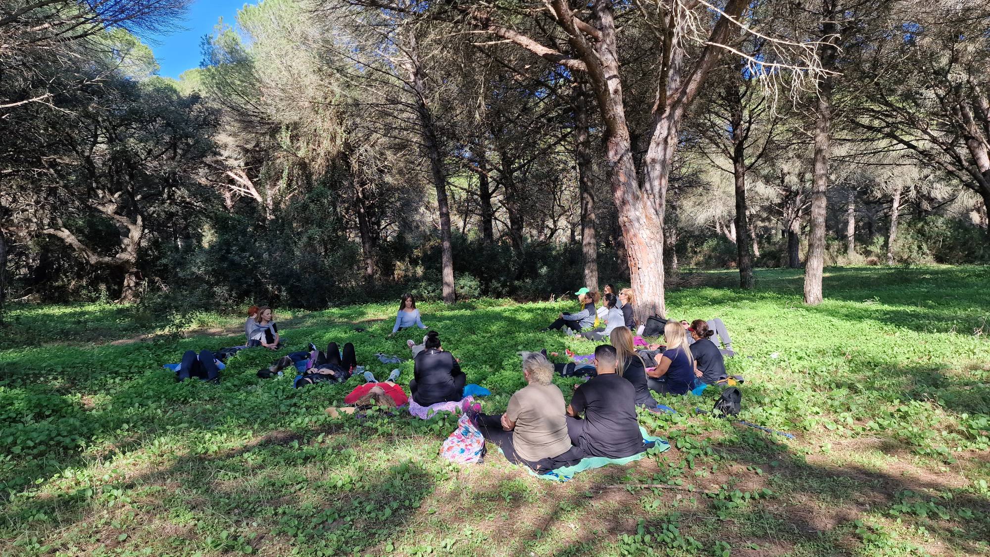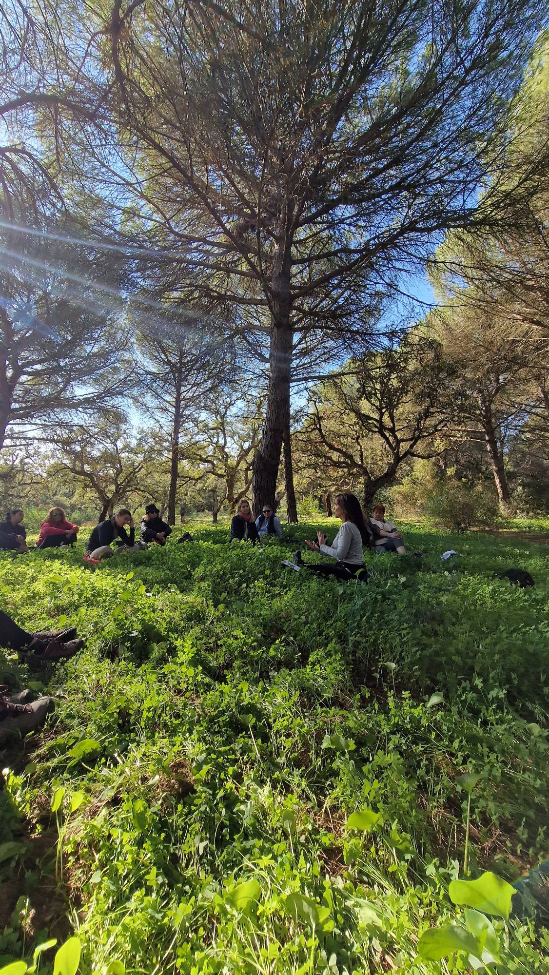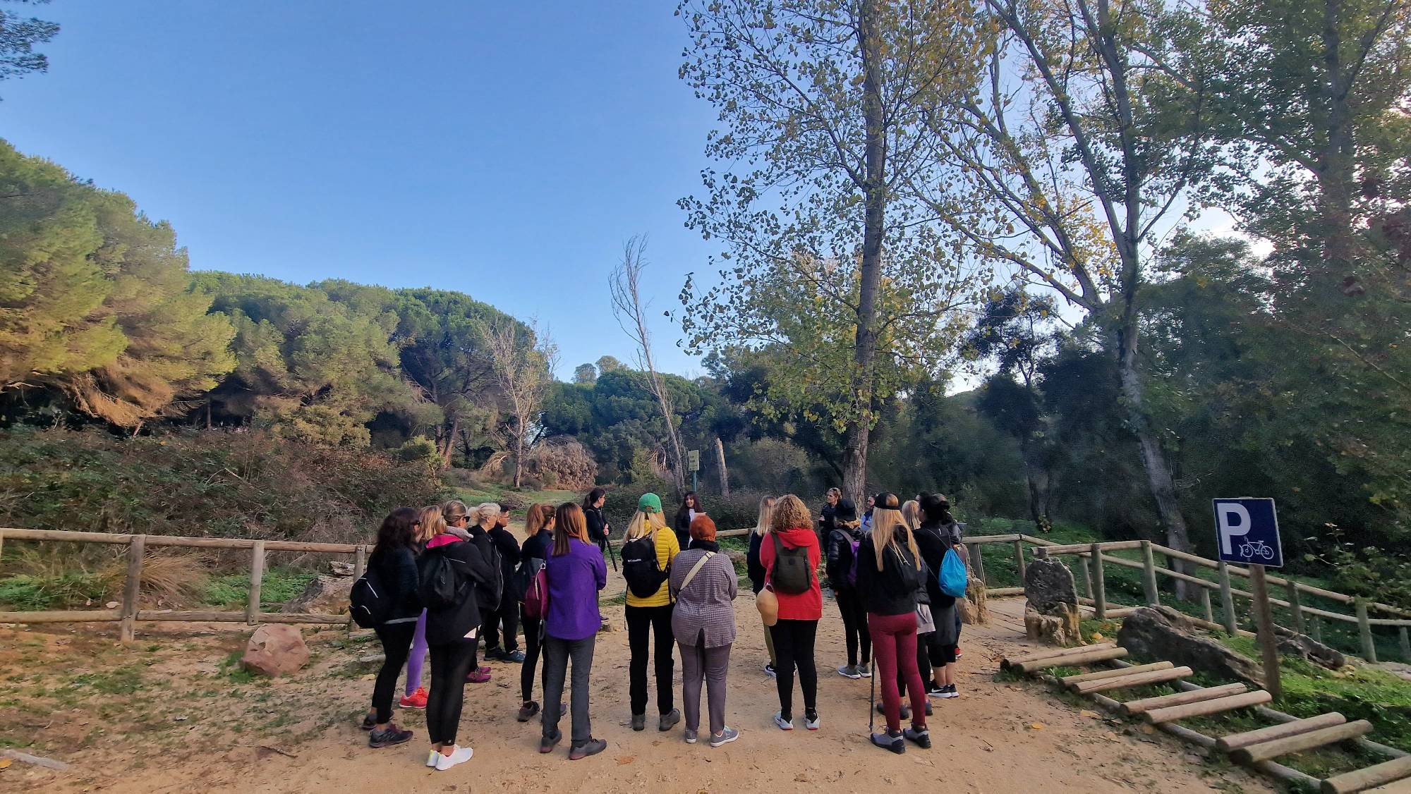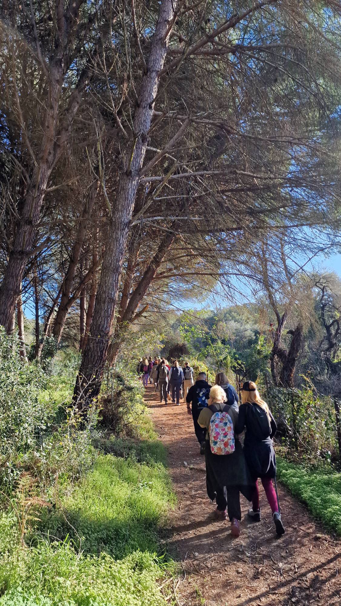 El popular entorno natural de El Pinar del Rey en San Roque fue el paraje elegido para caminar en atención plena y poner en práctica nuevas dinámicas de meditación. Al tratarse de un concepto de senderismo diferente, nos dimos la oportunidad de modificar el trayecto oficial, permitiéndonos realizarlo en sentido contrario y disfrutar de la tranquilidad que ofrece el paraje al otro extremo de la Fuente de la Alhaja.
